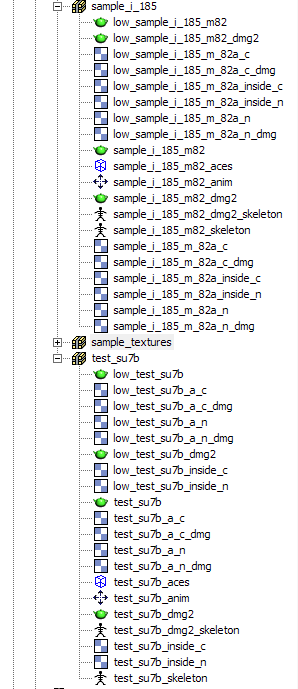 Теперь анимации. Тоже непонятки были. Говорил выше, что вернусь к ним. Сравнение выявило одно несущественное отличие, связанное, возможно, с версиями. Делаю вывод: значит анимации экспортил правильно. А делал это следующим образом: Выбирал слои для лода00, т.к. сказано, что анимации должны быть только на деталях лод00. Далее нажимаем кнопку экспорта анимации, имя файла, читаем лог, там все в порядке.